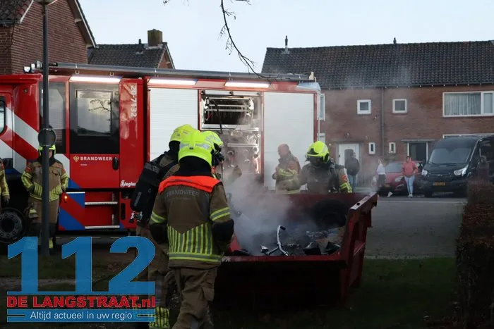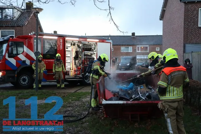 De brandweer in Waalwijk is zondagmiddag uitgerukt naar een brand in de Van Berckenrodelaan. Daar was in een grote container met afval brand uitgebroken.