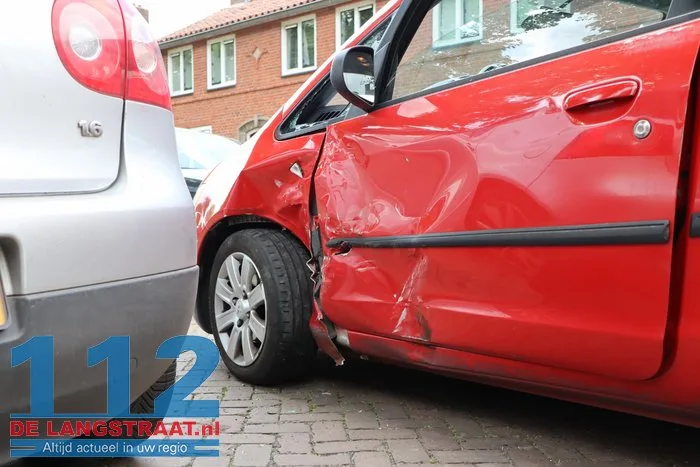Twee auto’s kwamen door nog onbekende oorzaak met elkaar in botsing. De klap was dermate hard dat ook twee geparkeerde voertuigen schade opliepen. Geen van de betrokkenen raakte gewond.