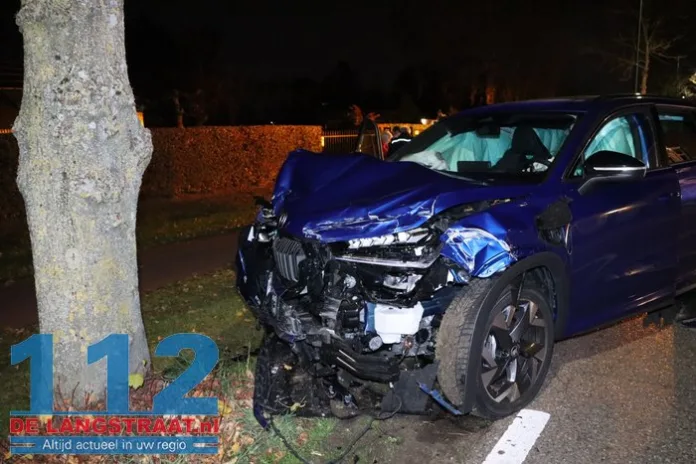 Op de Dongenseweg in Kaatsheuvel zijn woensdagavond rond 22.35 uur twee auto’s met elkaar in botsing gekomen. Een oudere man reed vanaf een oprit de weg op en zag een naderende auto over het hoofd, waarna die tegen zijn voertuig botste en tegen een boom tot stilstand kwam.