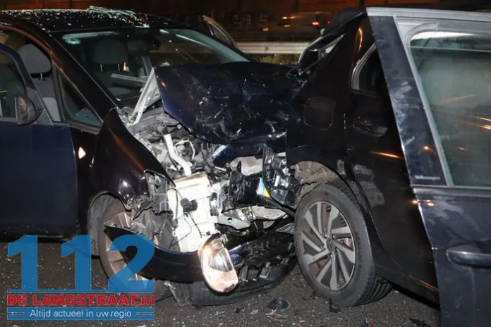 Vanavond rond 17.30 uur heeft zich op de A59, ter hoogte van de afslag naar de N261, een aanrijding voorgedaan waarbij drie voertuigen betrokken waren. De tweede auto reed achterop een stilstaande auto in de file, waarna de betrokken voertuigen door de klap in elkaar werden gedrukt.