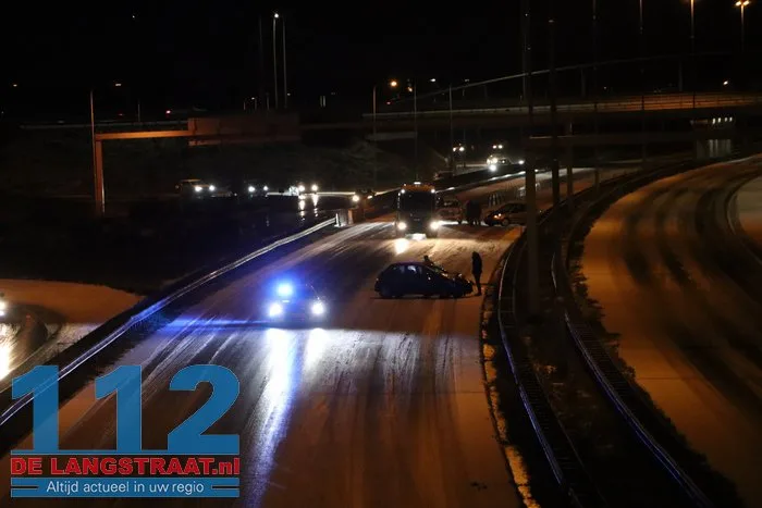 Rond 19.45 uur ging het mis op het spekgladde wegdek. Twee automobilisten verloren de macht over het stuur en kwamen hard in aanraking met de vangrail. Ondanks de flinke impact van de botsingen raakte er niemand gewond. De materiële schade aan de voertuigen is echter aanzienlijk.