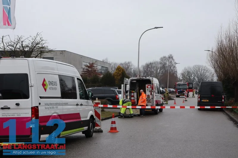 Tijdens werkzaamheden in de grond werd per ongeluk een gasleiding geraakt. De uitstromende damp zorgde voor een sterke gaslucht die in de ruime omgeving van het bedrijventerrein goed te ruiken was. Uit voorzorg stelde de brandweer een veiligheidszone in en werd de weg afgezet om elk risico voor omstanders en het verkeer uit te sluiten.