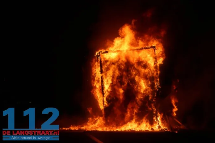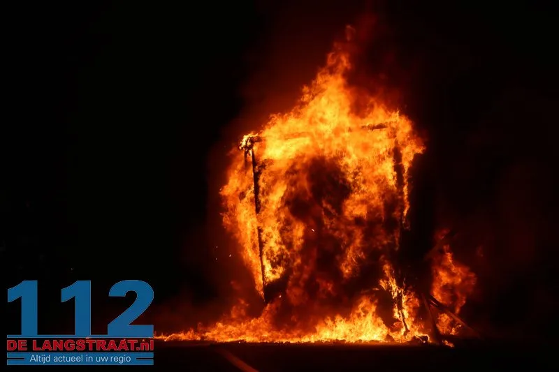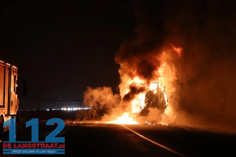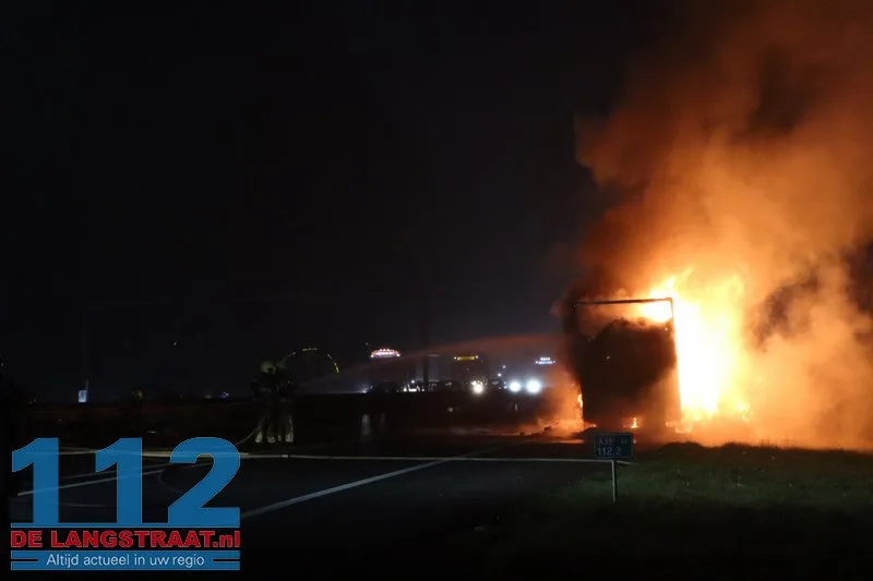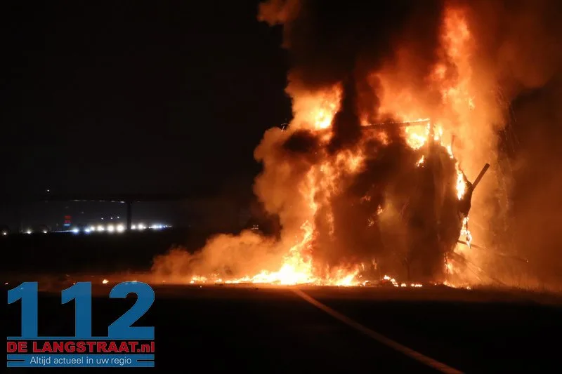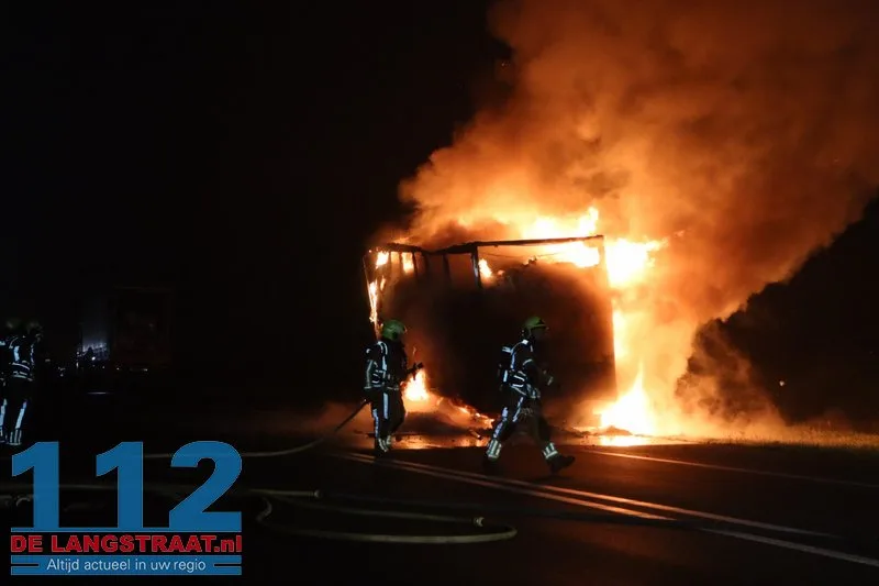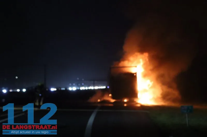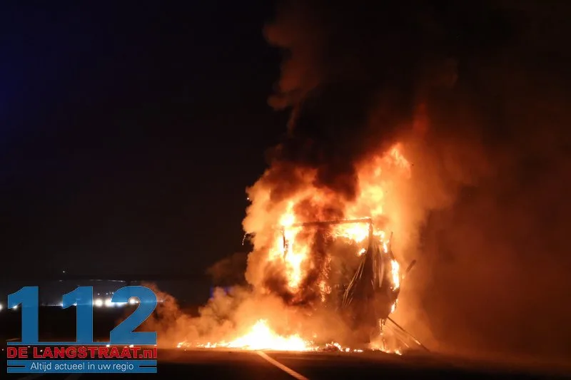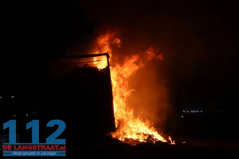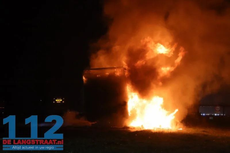 De chauffeur wist de trekker op tijd los te koppelen en verder te rijden, waardoor verdere schade aan de vrachtwagen werd voorkomen. De aanhanger, die geladen was met balen textiel, stond volledig in brand.