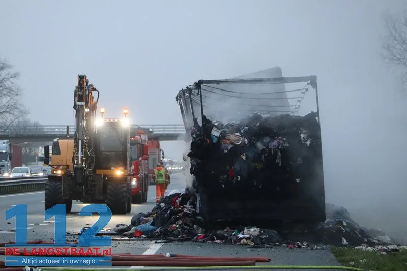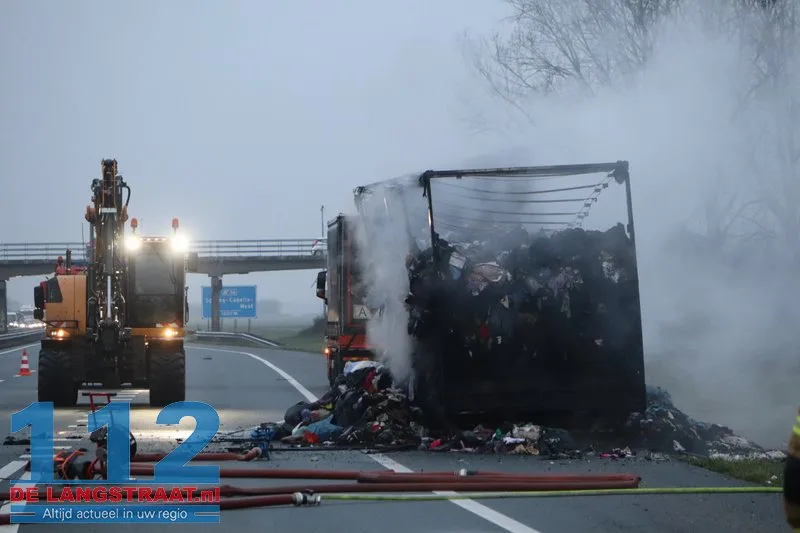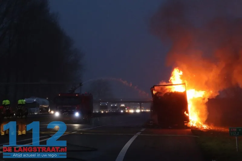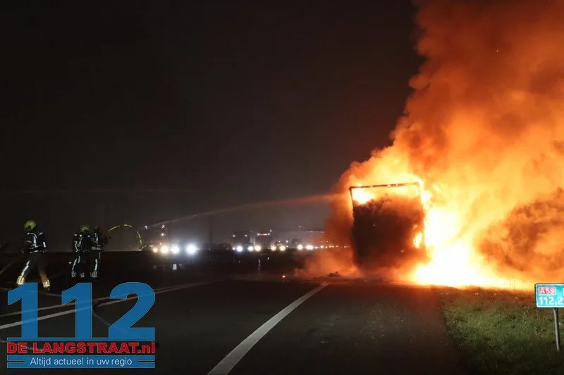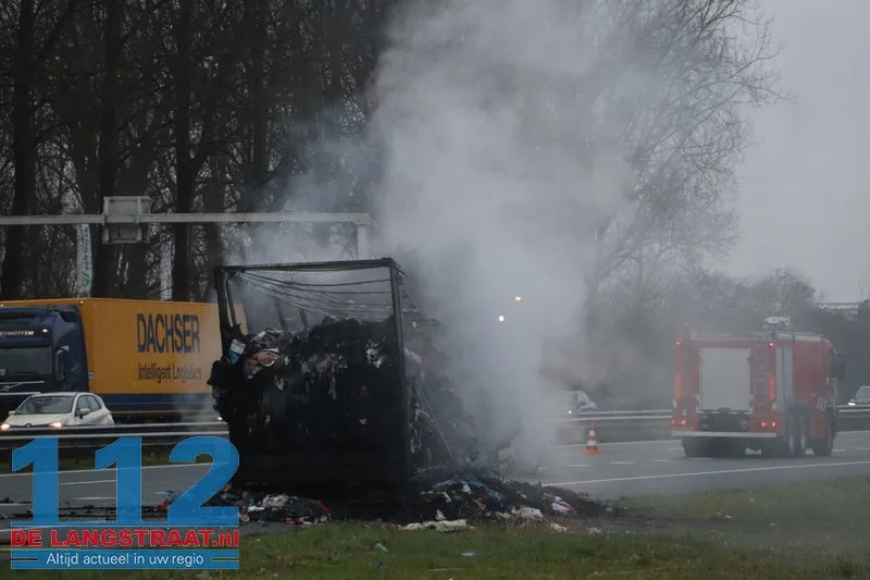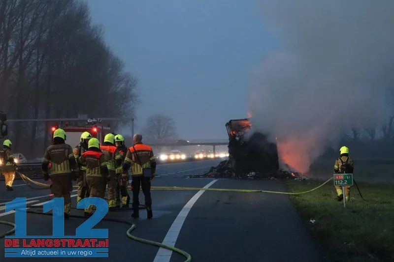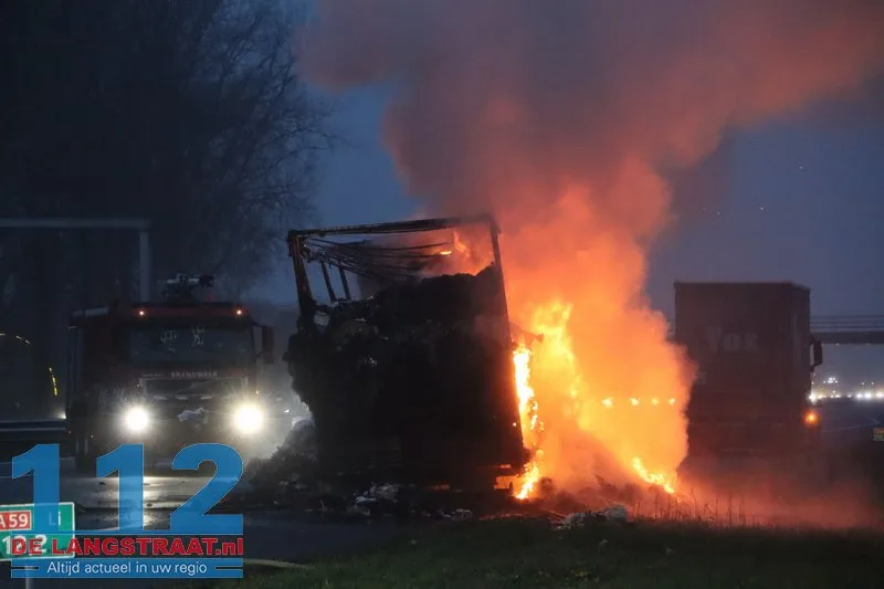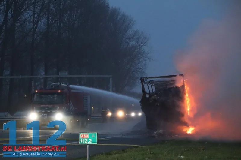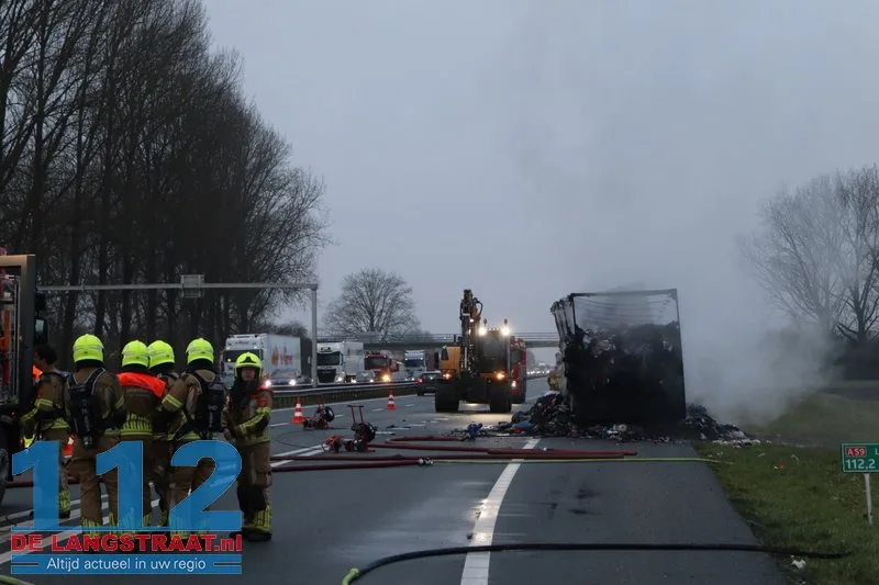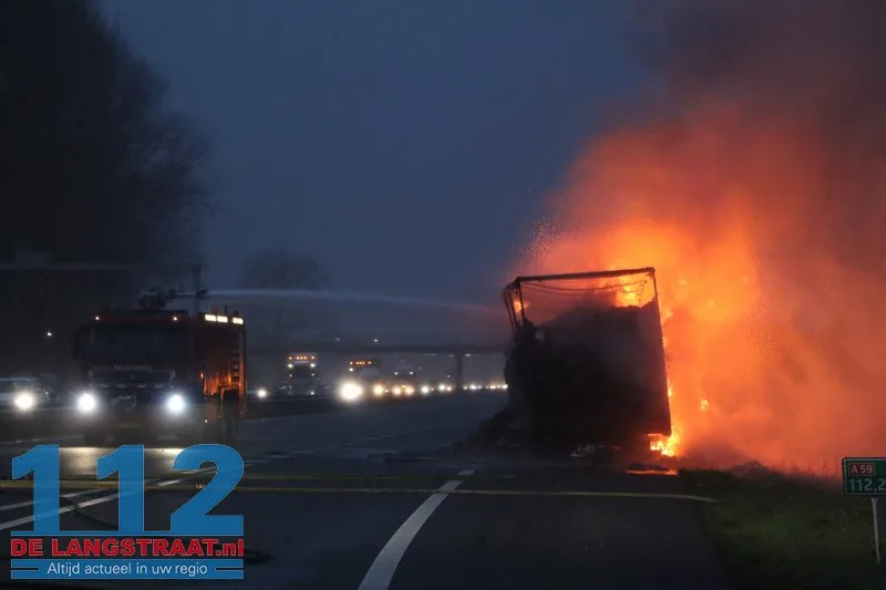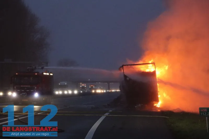 Woensdagochtend rond 07.00 uur is op de A59 (noordbaan) van Waalwijk richting knooppunt Hooipolder een aanhanger van een vrachtwagen in brand gevlogen ter hoogte van Sprang-Capelle.