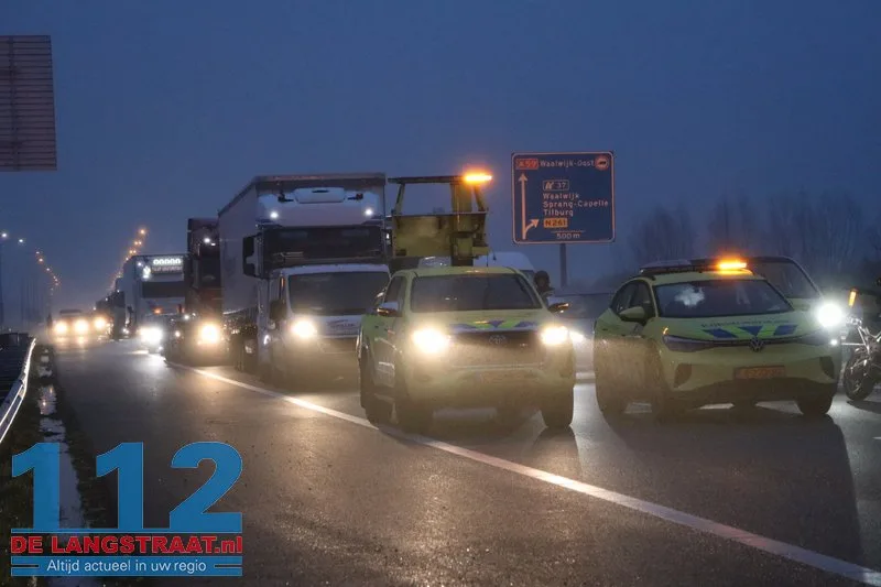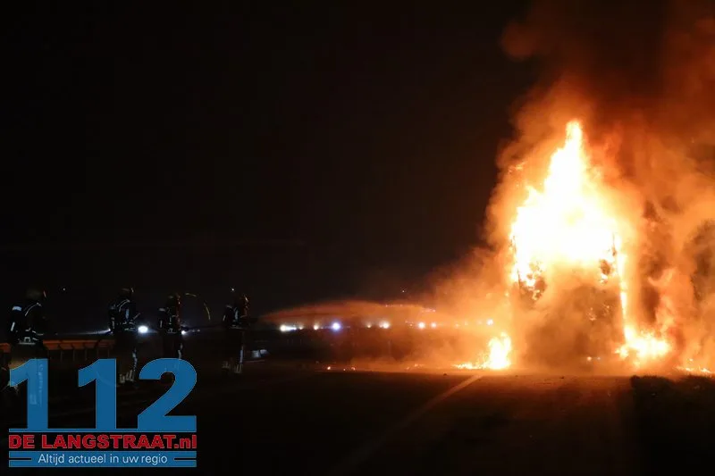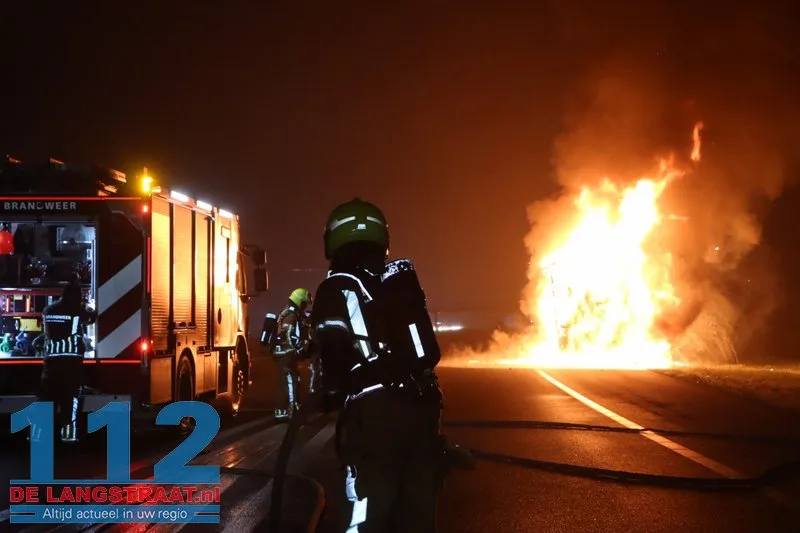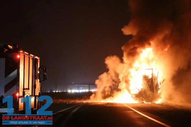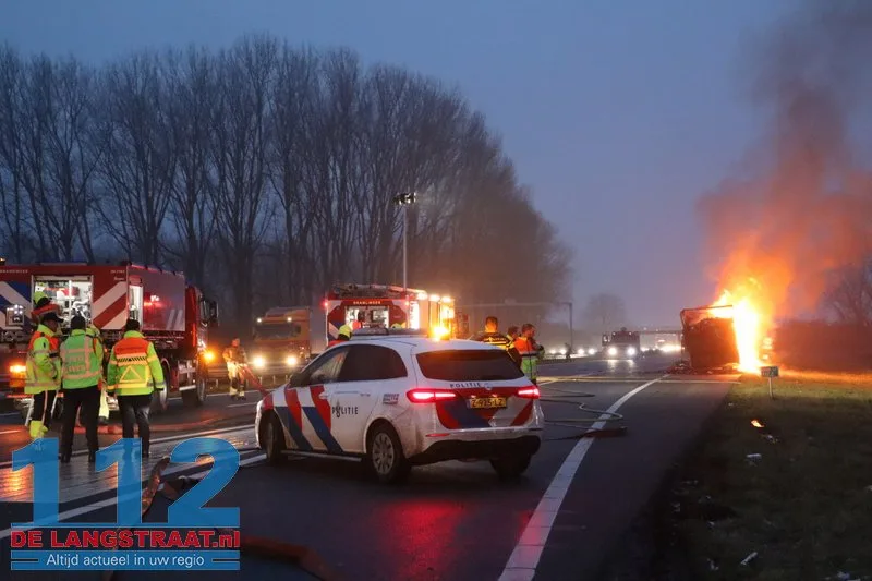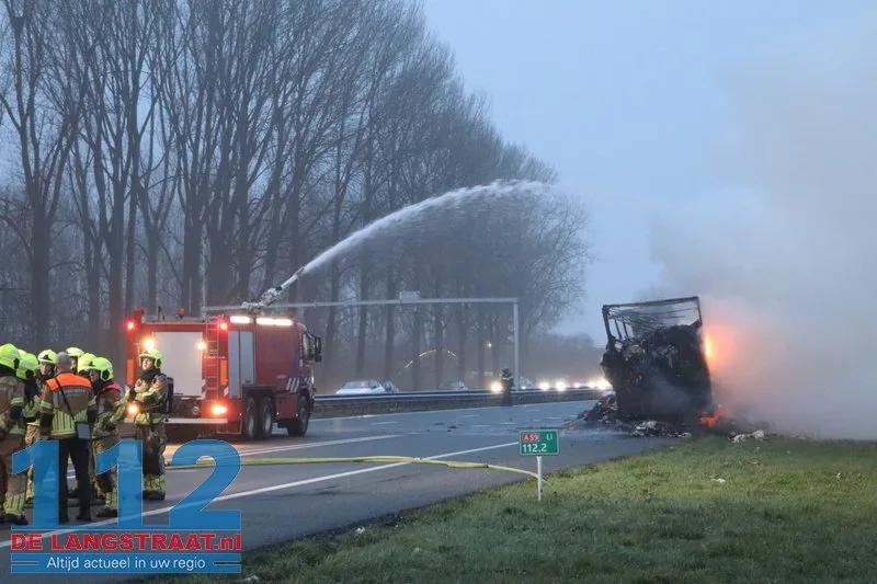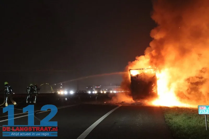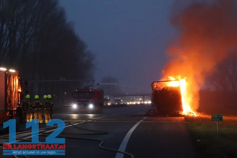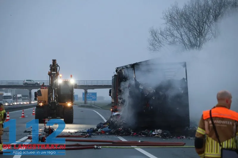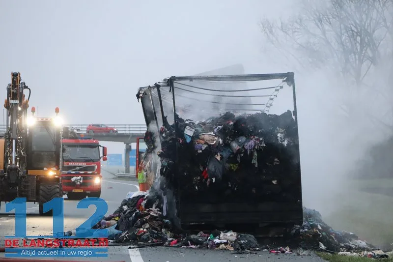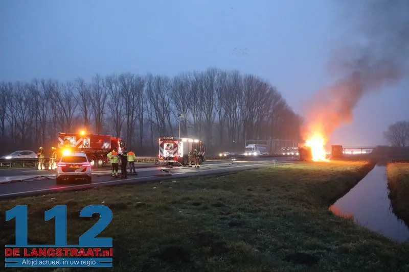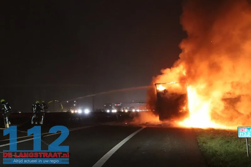 Woensdagochtend rond 07.00 uur is op de A59 (noordbaan) van Waalwijk richting knooppunt Hooipolder een aanhanger van een vrachtwagen in brand gevlogen ter hoogte van Sprang-Capelle.