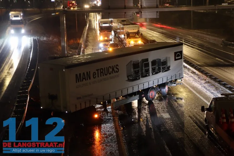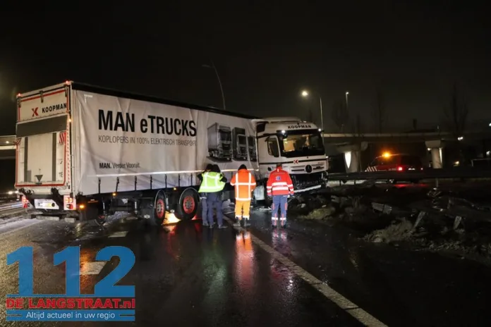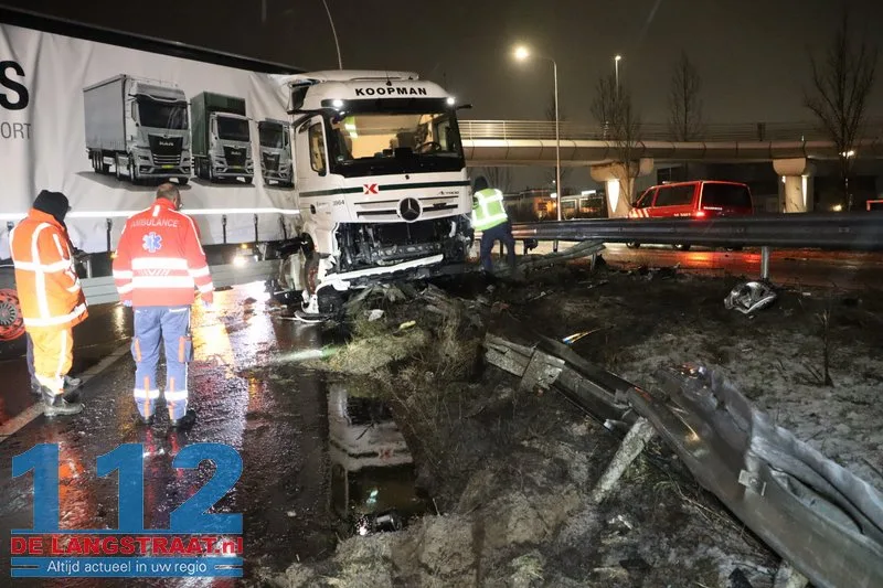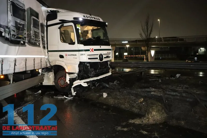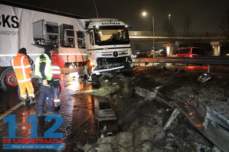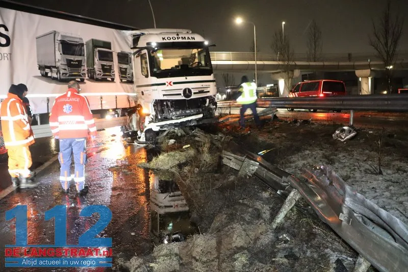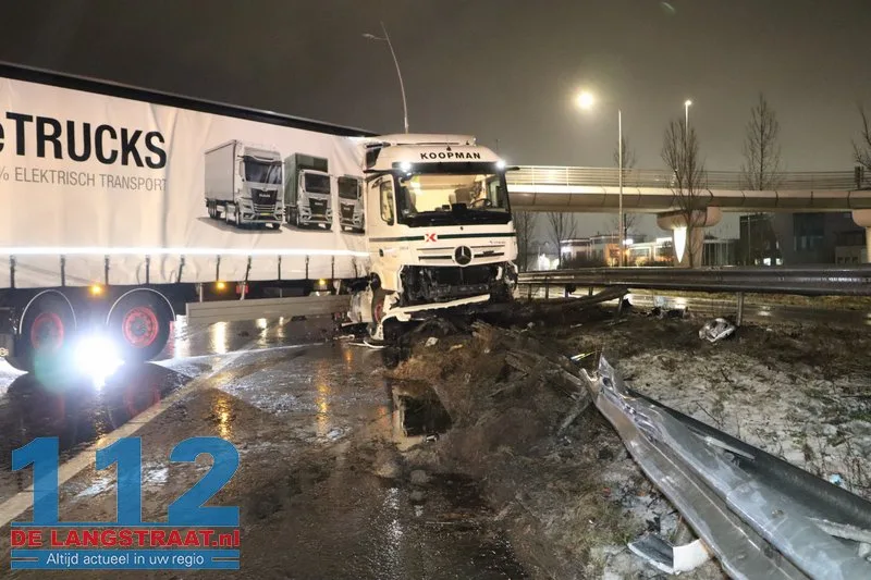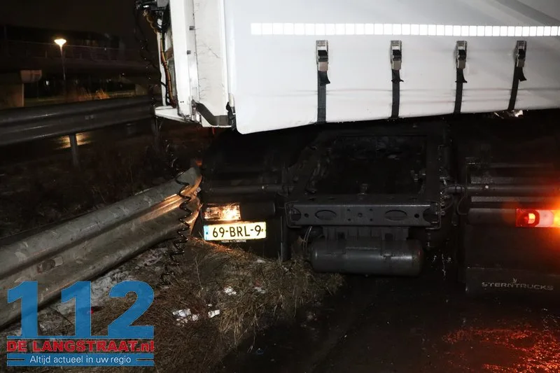 Een vrachtwagenchauffeur is donderdagochtend vroeg gewond geraakt bij een eenzijdig ongeval op de Midden-Brabantweg (N261). Door plotselinge gladheid, veroorzaakt door hagel en sneeuw, verloor de chauffeur rond 04:15 uur de macht over het stuur en kwam hard in aanraking met de vangrail.