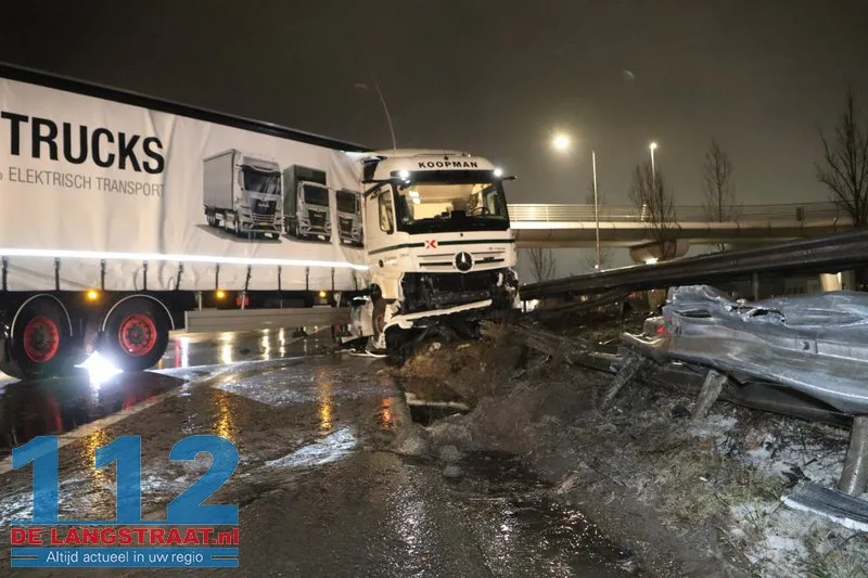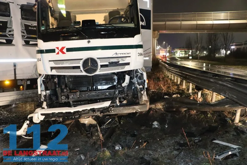 De impact van de botsing was groot; zowel de vrachtwagen als de vangrail liepen aanzienlijke schade op. De chauffeur raakte bij het ongeval gewond en is door ambulancepersoneel met onbekend letsel overgebracht naar het ziekenhuis.
