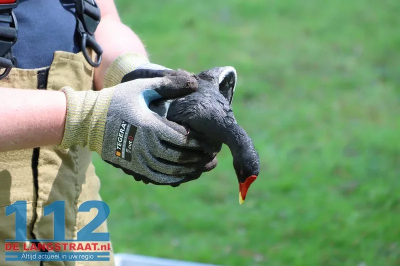 Rond het middaguur werd de dierenambulance gealarmeerd voor de twee vogels in de sloot. Omdat de meerkoeten diep in de duiker zaten en er geen beweging in te krijgen was, werd de hulp van de brandweer ingeschakeld. Door enkele bouten van het rooster los te draaien, ontstond er net genoeg ruimte om de dieren met een schepnet te bereiken.